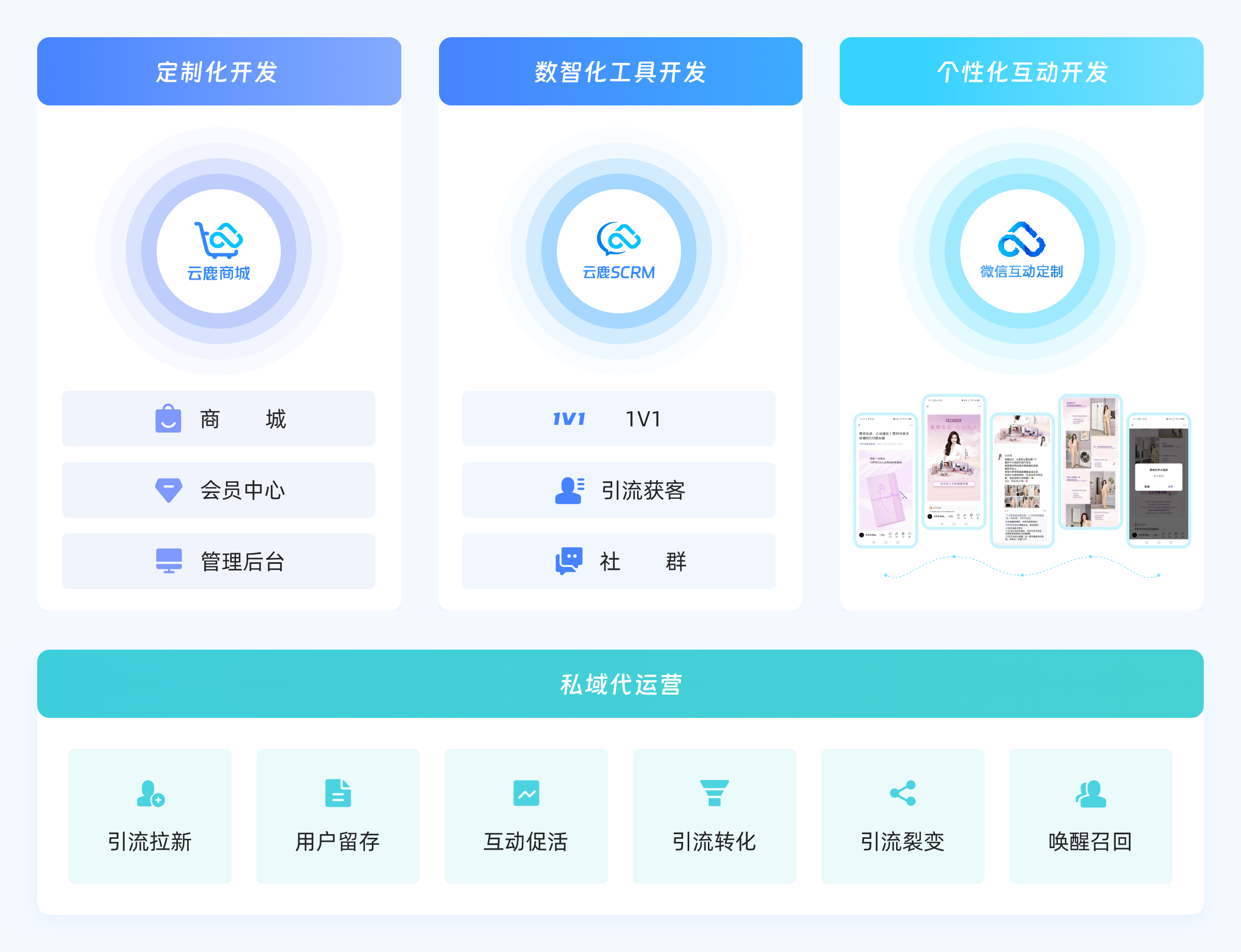 提供引流拉新、留存促活、裂变转化、唤醒召回等全周期运营服务